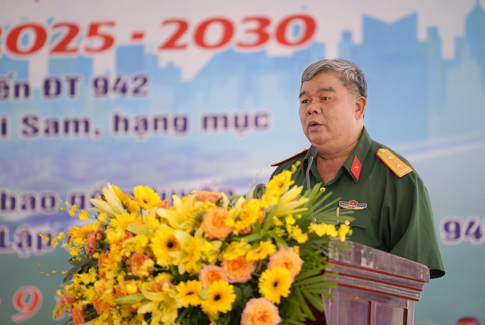 Trung tá Phạm Thành Đông - Giám đốc chi nhánh Sài Gòn - Tổng Công ty Thái Sơn Bộ quốc phòng (đại diện các nhà thầu thi công) trình bày tóm tắt phương án thi công, hứa quyết tâm hoàn thành công trình.