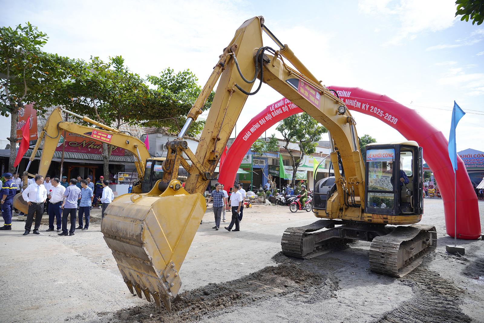 Máy xúc xúc đất tại lễ khởi công 3 dự án.