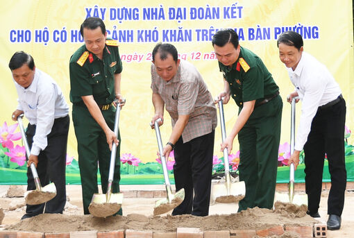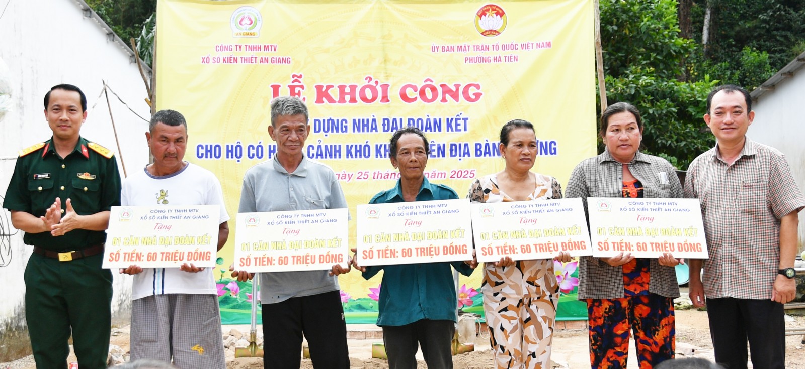 Tại buổi lễ các đơn vị phối hợp đã trao bảng tượng trưng tài trợ kinh phí xây dựng 10 căn nhà Đại đoàn kết, mỗi căn nhà được hỗ trợ 60 triệu đồng, đảm bảo tiêu chí “3 cứng” (nền cứng, khung - tường cứng, mái cứng), do Bộ Chỉ huy Quân sự tỉnh vận động Công ty TNHH MTV Xổ số kiến thiết An Giang tài trợ.