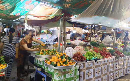 Tiểu thương bán trái cây tại chợ biên giới Vĩnh Xương, xã Vĩnh Xương. Ảnh: DANH THÀNH