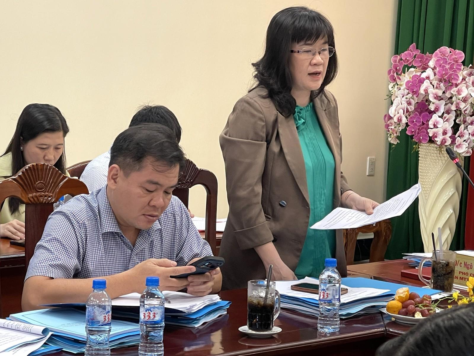 Phó Chủ tịch Ủy ban MTTQ Việt Nam tỉnh An Giang Hà Minh Trang báo cáo công tác chuẩn bị đại hội.