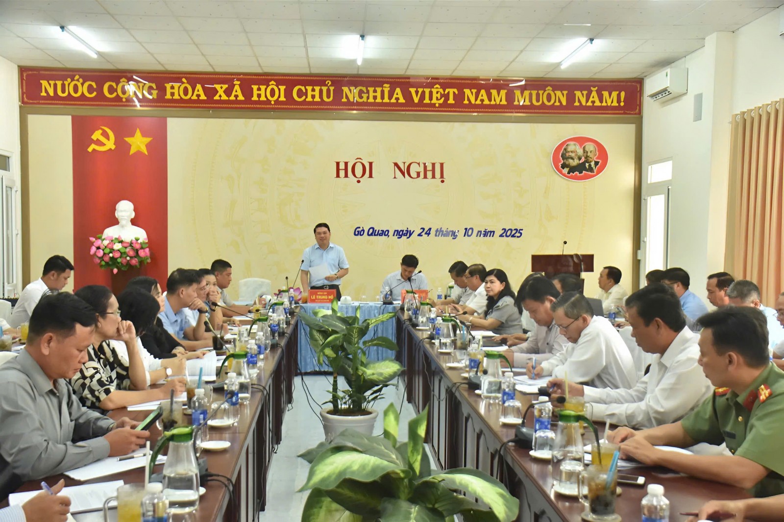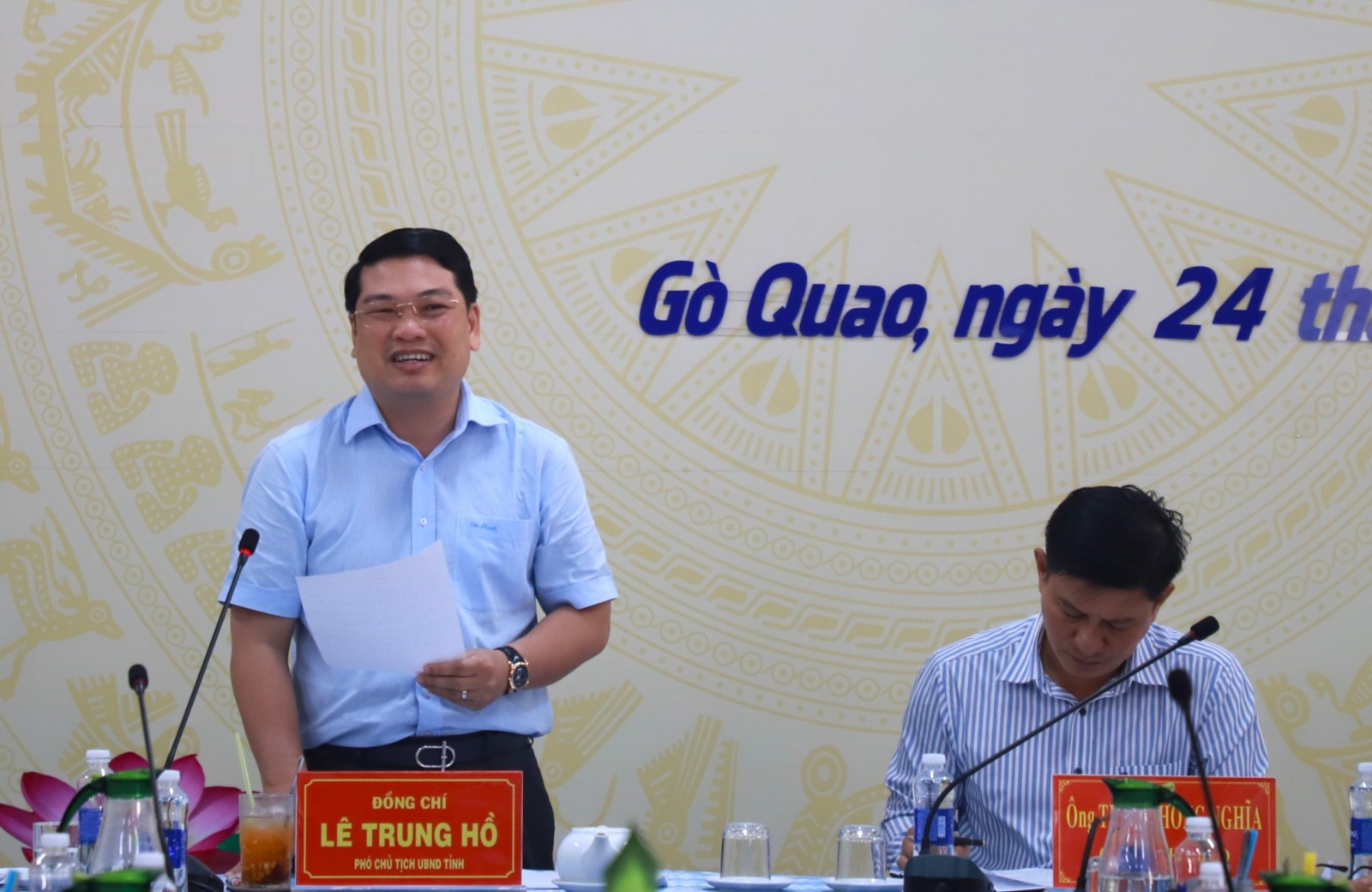 Phó Chủ tịch UBND tỉnh An Giang Lê Trung Hồ cùng thành viên đoàn công tác khảo sát thực tế tại xã Gò Quao.Phó Chủ tịch UBND tỉnh An Giang Giang Lê Trung Hồ phát biểu tại buổi làm việc với UBND xã Gò Quao.