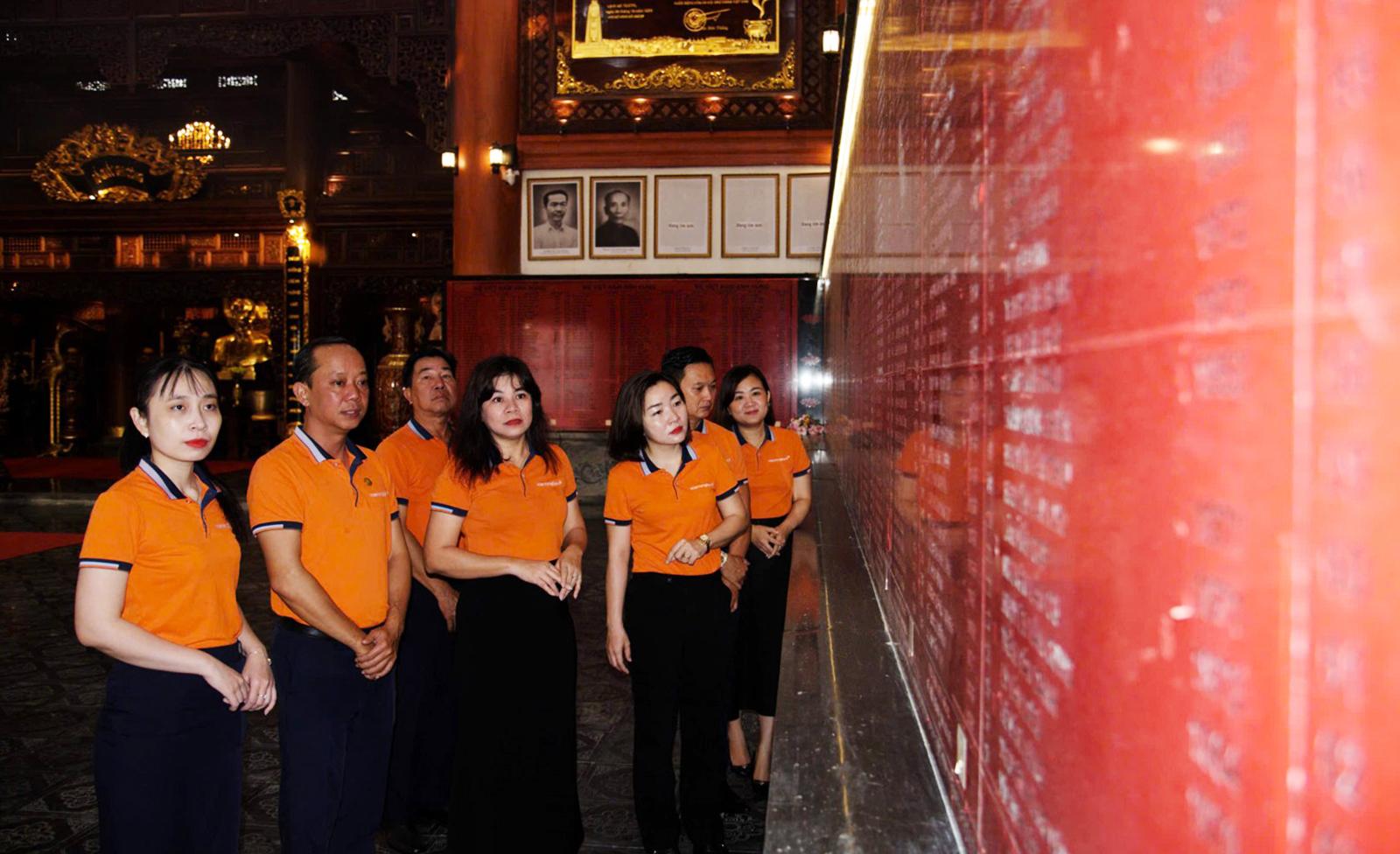 Trong không khí trang nghiêm, đoàn đã thành kính dâng hương, dành phút mặc niệm tưởng nhớ các Anh hùng liệt sĩ, các thế hệ đi trước đã anh dũng chiến đấu, hy sinh vì sự nghiệp giải phóng dân tộc, thống nhất đất nước.