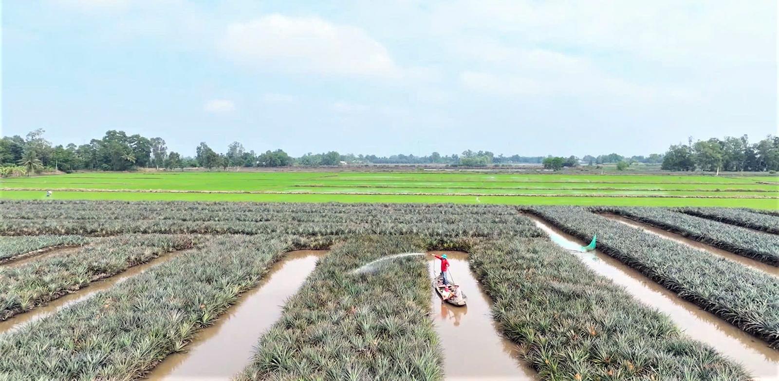 Người dân xã Vĩnh Hòa Hưng tham gia mô hình kinh tế tập thể trồng khóm cho thu nhập cao. Ảnh: CẨM TÚ