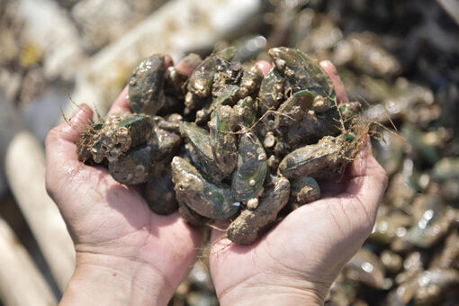 Vẹm xanh nuôi từ 11 - 12 tháng sẽ cho thu hoạch. Ảnh: ĐẶNG LINH