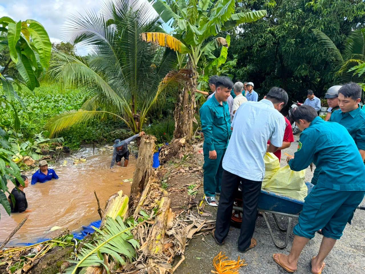 Gia cố các điểm sụt lún, có nguy cơ để đảm bảo an toàn sản xuất, vườn cây ăn trái cho người dân.