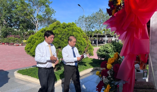 Giảng viên, học viên dâng hoa, dâng hương tượng đài Chủ tịch Tôn Đức Thắng.