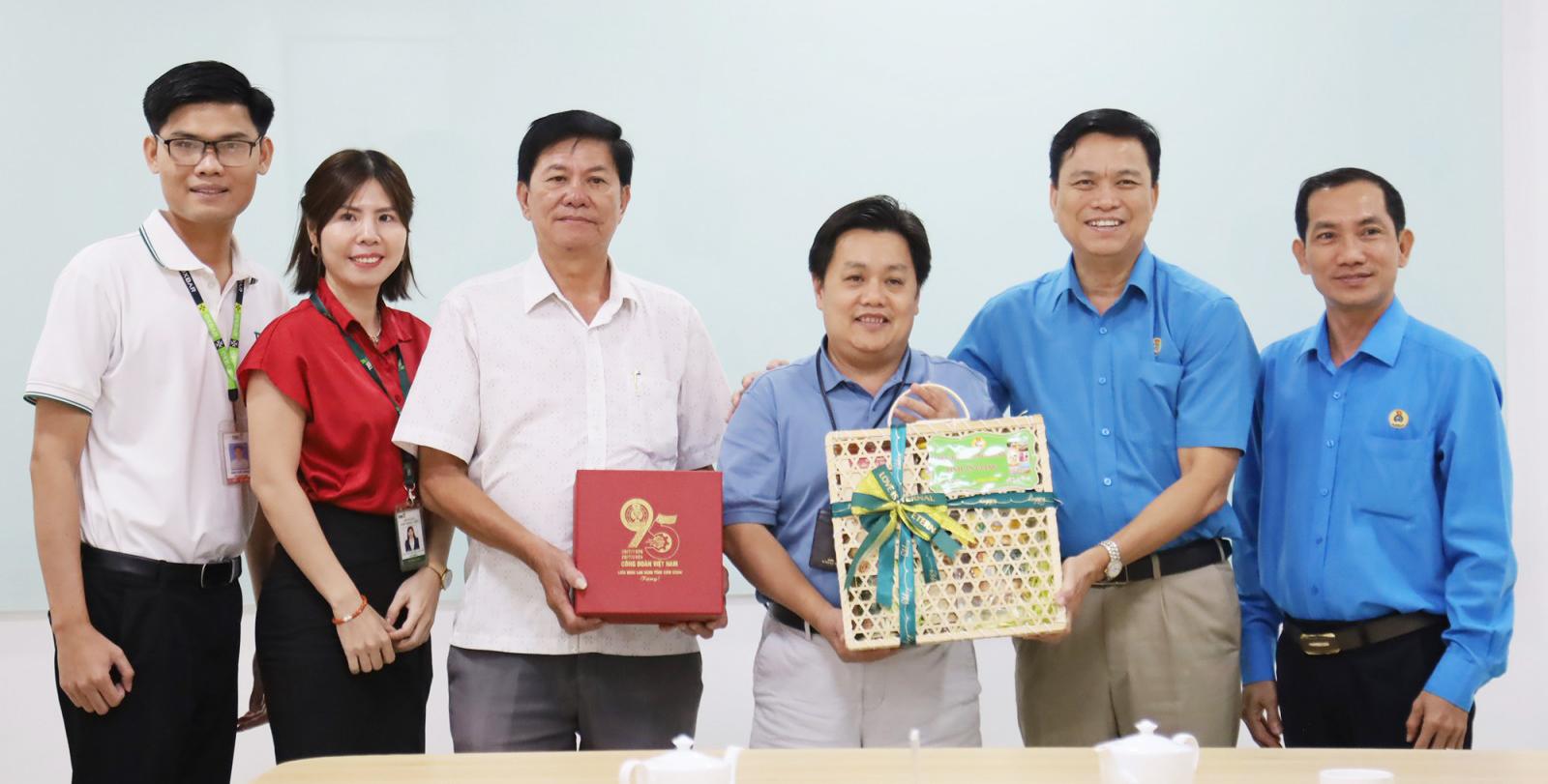 Chủ tịch Liên đoàn Lao động tỉnh An Giang Đỗ Trần Thịnh (thứ hai, từ phải qua) tặng quà Công ty Cổ phần TBS An Giang.