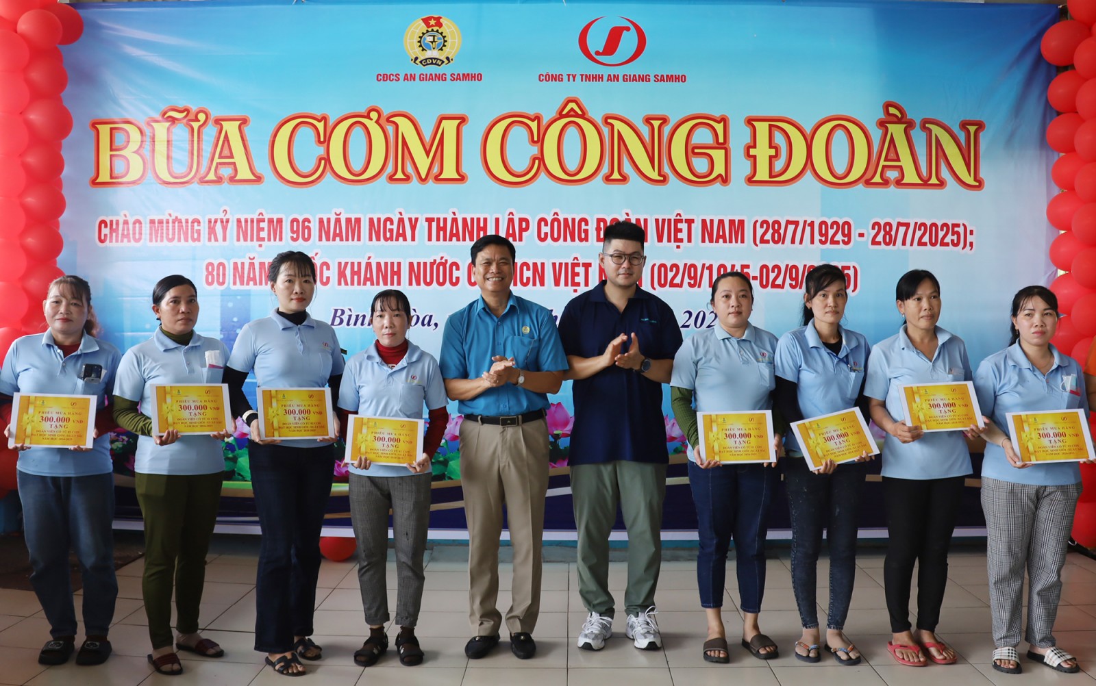 Kỷ niệm 80 năm Ngày Cách mạng Tháng Tám thành công (19/8/1945 - 19/8/2025) và Quốc khánh nước Cộng hòa Xã hội Chủ nghĩa Việt Nam (2/9/1945 - 2/9/2025), Liên đoàn Lao động tỉnh An Giang tổ chức Chương trình “Bữa cơm Công đoàn” tại 5 công đoàn cơ sở, gồm: Công ty Cổ phần Rau quả thực phẩm An Giang, Công ty Cổ phần Xây lắp An Giang, Công ty Cổ phần Kiên Hùng, Công ty Cổ phần Đầu tư xây dựng Toàn Lộc Gò Quao - Kiên Giang và Công ty TNHH Taesung Rạch Giá. Qua đó, có tổng số gần 2.400 đoàn viên, người lao động được tham gia “Bữa cơm công đoàn”, với tổng kinh phí trên 130 triệu đồng, trong đó Liên đoàn Lao động tỉnh An Giang hỗ trợ trên 82 triệu đồng.