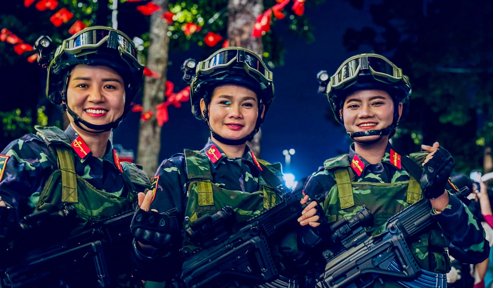 Chị Chhắc Phol Line Đa (bìa phải) tham gia khối chiến sĩ biệt động. Ảnh: GIA KHÁNH