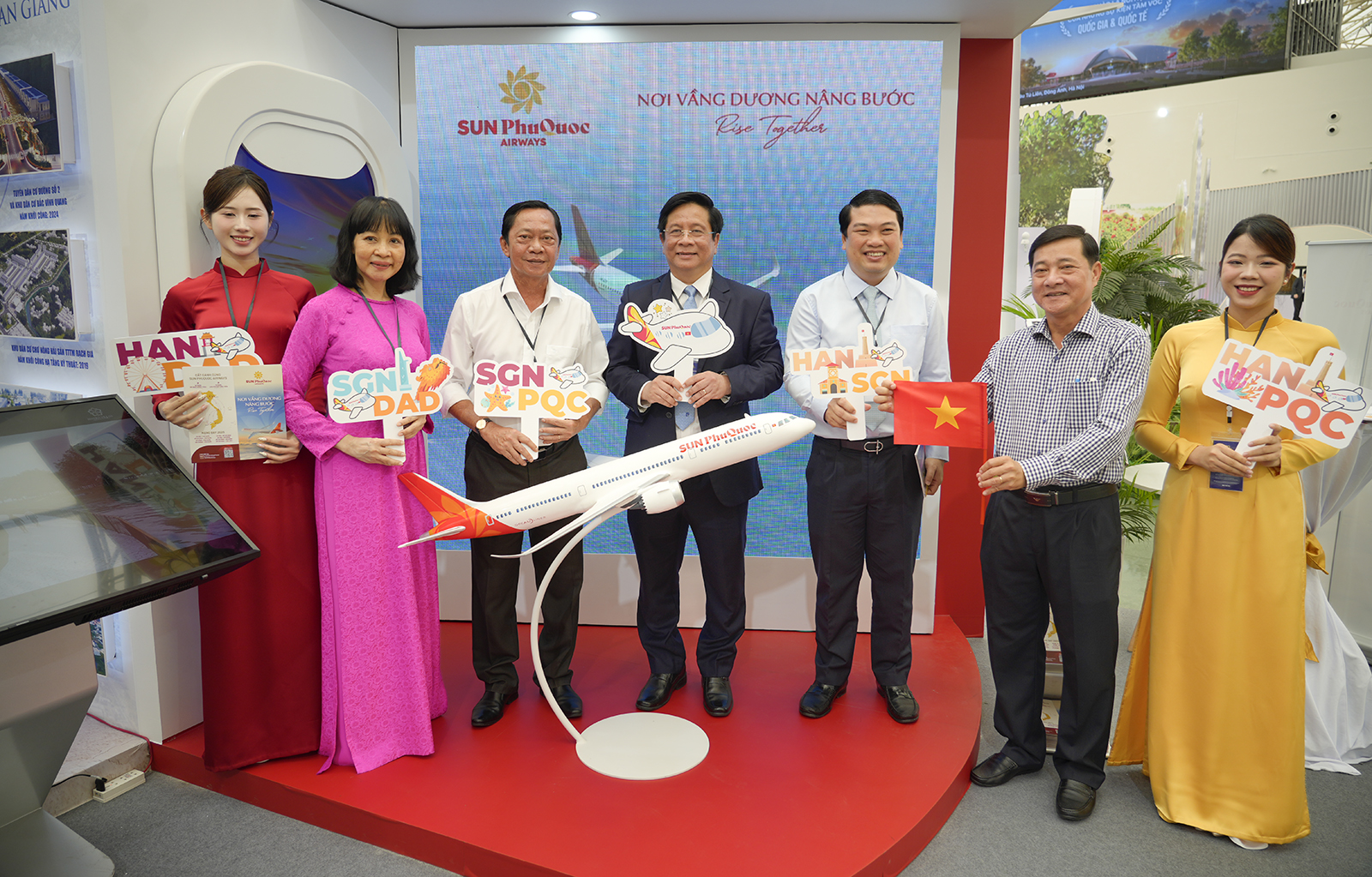 Lãnh đạo tỉnh An Giang tham quan gian hàng trưng bày của Sun Phú Quốc Airways.