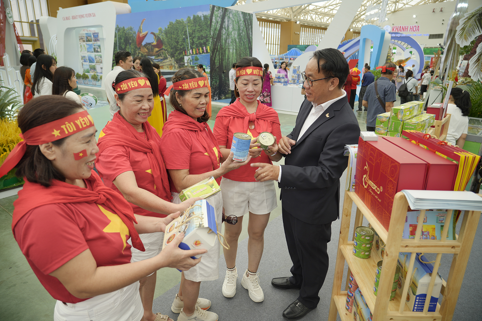 Du khách tham quan sản phẩm nông sản của tỉnh An Giang.
