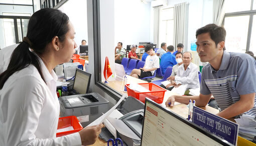 Người dân giải quyết thủ tục hành chính tại Trung tâm Phục vụ hành chính công xã Thạnh Đông. Ảnh: THU OANH
