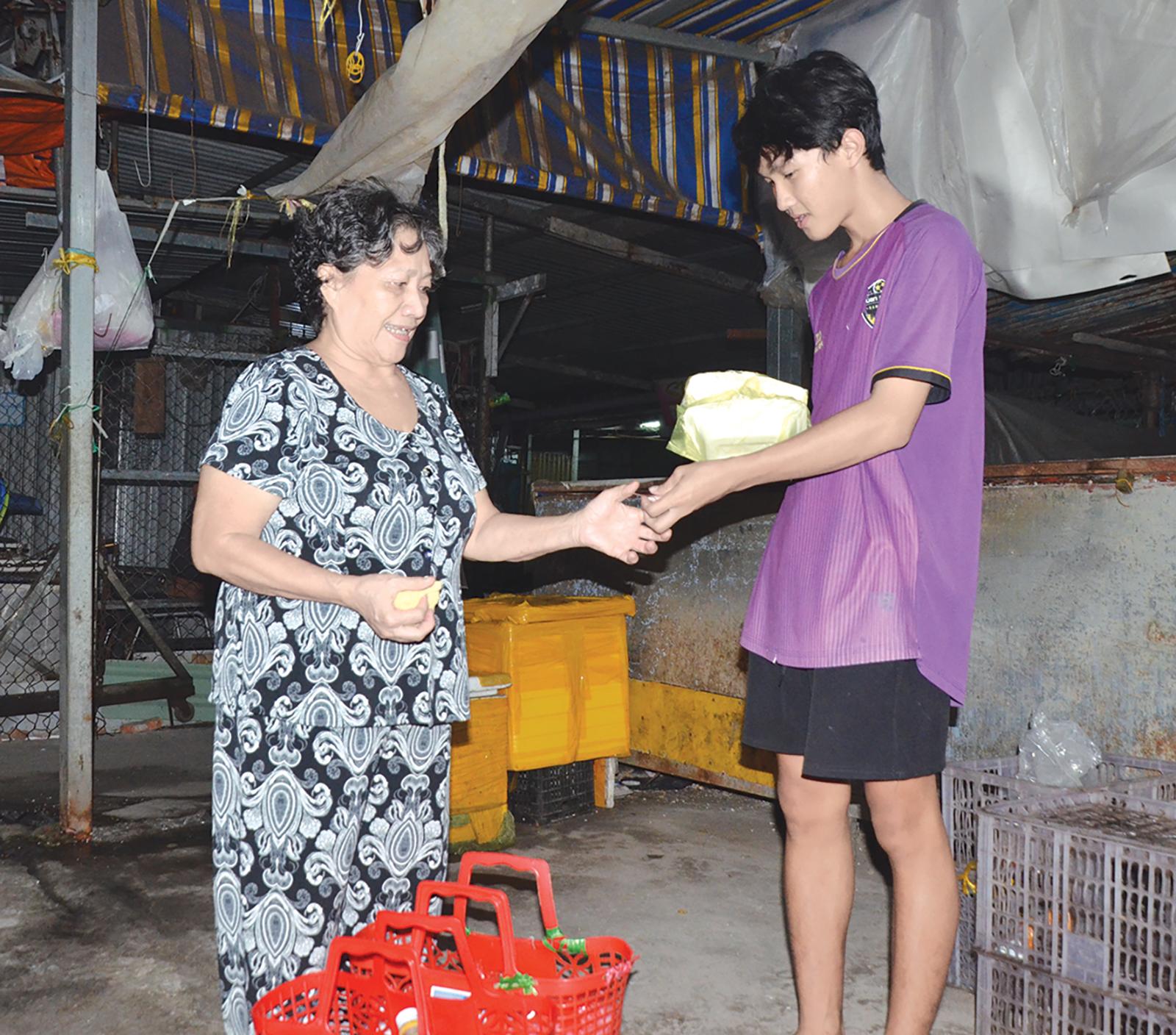 Nửa đêm, giữa dòng người đông đúc, bà Bảy Đức, ngụ phường Rạch Giá, xách 2 giỏ cơm tấm và bún xào đi bán. Dáng bà nhỏ nhắn, đôi chân thoăn thoắt bước đi, tiếng rao hàng vang vọng khắp chợ: “Ai cơm đây, bún đây. Nay cô Hai ăn gì không?”. Bà bắt đầu đi bán từ 23 giờ, vòng quanh từng ngóc ngách chợ. “Mỗi ngày tôi bán 20 - 30 hộp cơm, bún, giá 15.000 đồng/hộp, kiếm được trăm, hai trăm ngàn là vợ chồng đủ sống”, bà Bảy Đức nói.