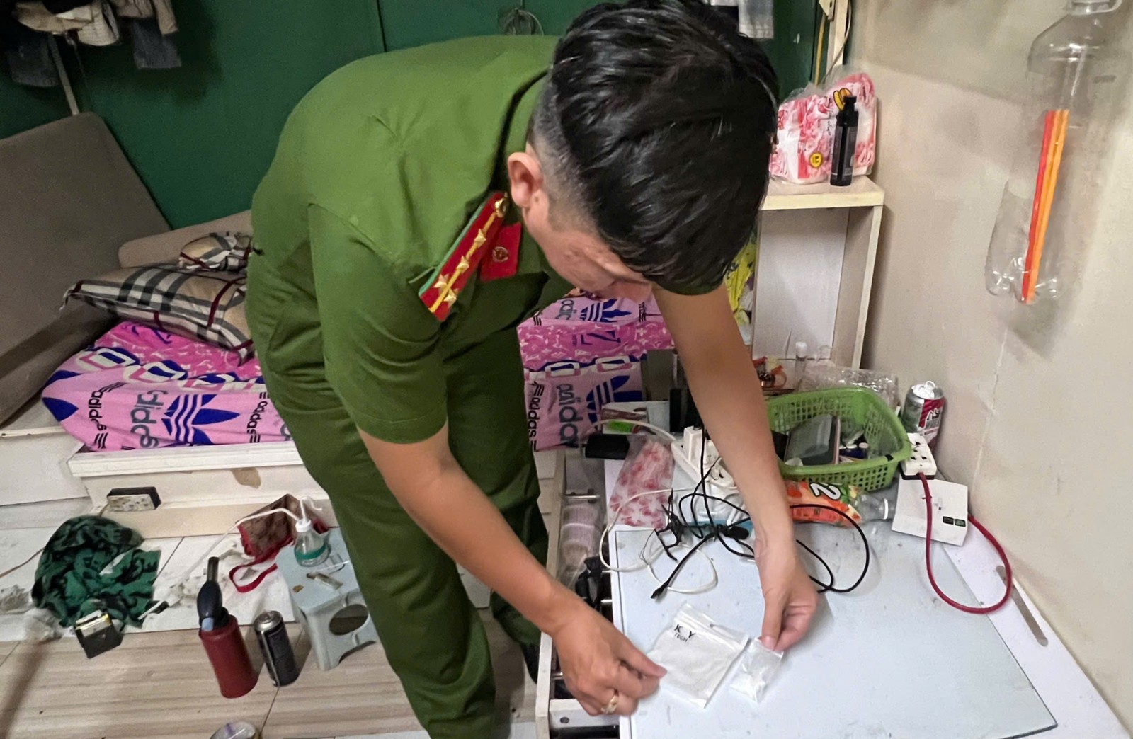 Lực lượng công an thu giữ chất ma túy tại chỗ ở của các đối tượng phạm tội. Ảnh: NGUYỄN HƯNG