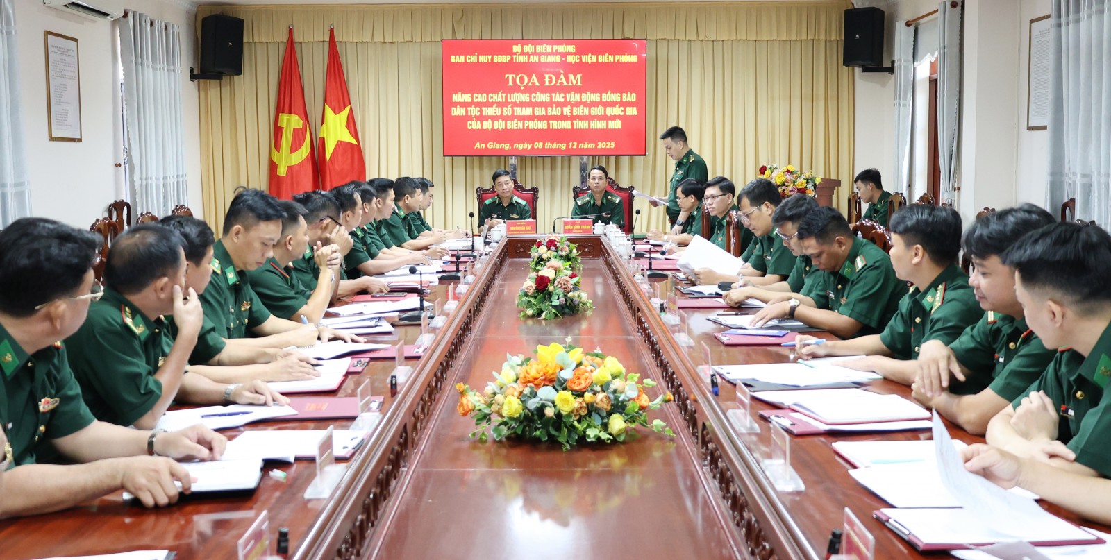 Ngày 8/12, tại tỉnh An Giang, Học viện Biên phòng phối hợp Ban Chỉ huy Bộ đội Biên phòng tỉnh An Giang tổ chức Tọa đàm đề tài “Nâng cao chất lượng công tác vận động đồng bào dân tộc thiểu số tham gia bảo vệ biên giới quốc gia của bộ đội biên phòng trong tình hình mới”.