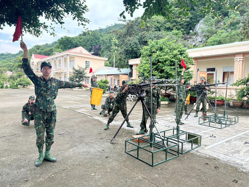 Đại đội Bộ binh Kiên Hải huấn luyện súng máy phòng không 12,7mm, nâng cao khả năng chiến đấu và phòng thủ. Ảnh: THU OANH