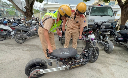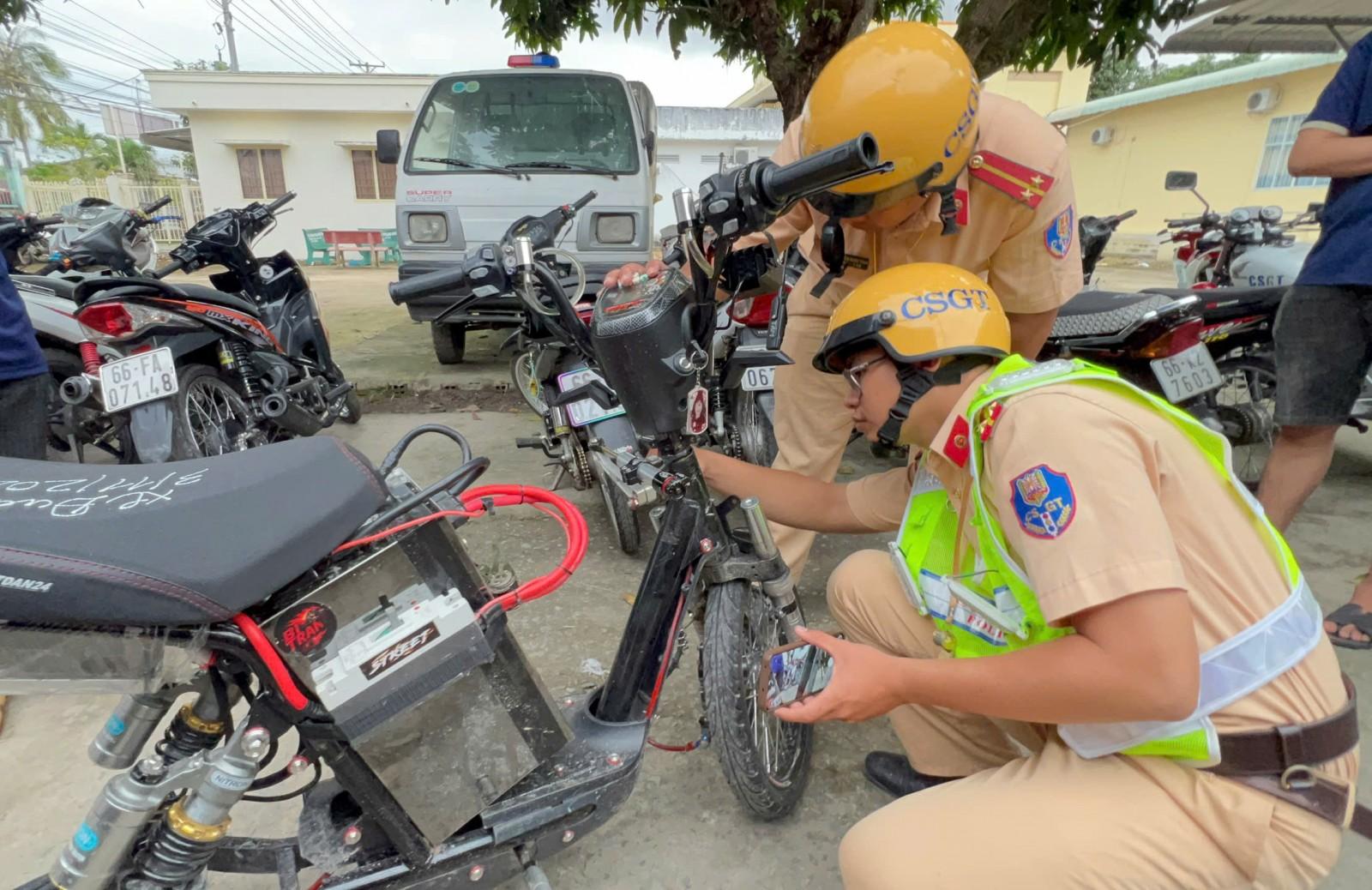 Lực lượng Cảnh sát giao thông kiểm tra các thông số của xe điện "độ"