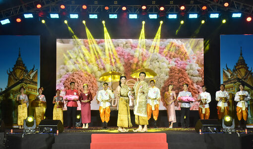 Tiết mục trình diễn trang phục truyền thống đồng bào Khmer tại liên hoan “Nghệ thuật truyền thống Khmer tỉnh An Giang”. Ảnh: CẨM TÚ