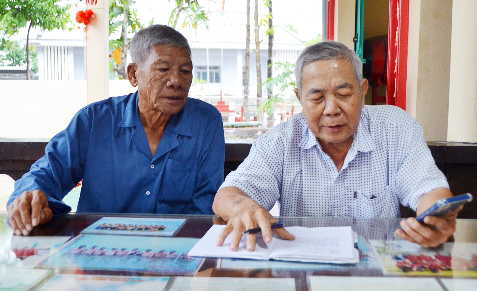 Ông Năm Lẹ (bên trái) luôn bận rộn với công tác xã hội, từ thiện. Ảnh: THANH THANH