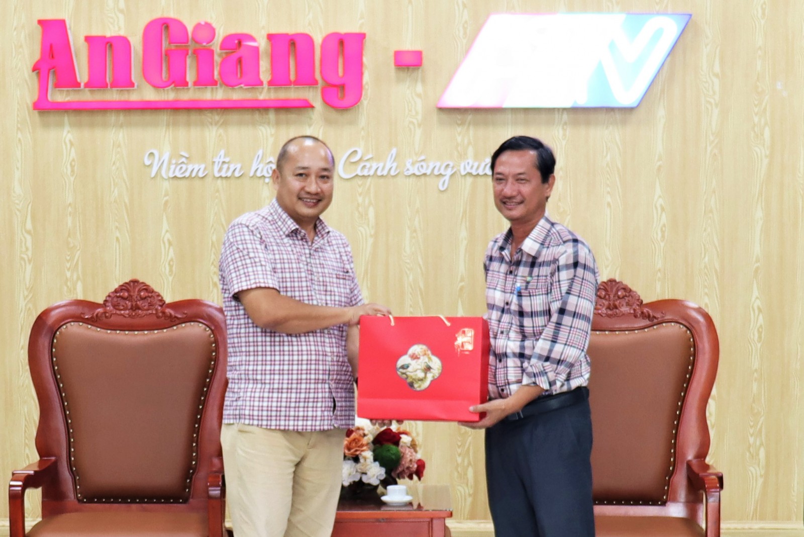 Giám đốc Công ty TNHH Truyền hình Phương Nam (thuộc Báo và Phát thanh, Truyền hình Vĩnh Long) Đỗ Đức Dũng đến thăm và gửi lời chúc mừng năm mới Ban Giám đốc, tập thể viên chức, người lao động Báo và Phát thanh - Truyền hình tỉnh An Giang. Đồng thời, chia sẻ những kinh nghiệm trong lĩnh vực truyền hình và mong muốn tiếp tục tăng cường công tác phối hợp giữa 2 đơn vị trong thời gian tới.