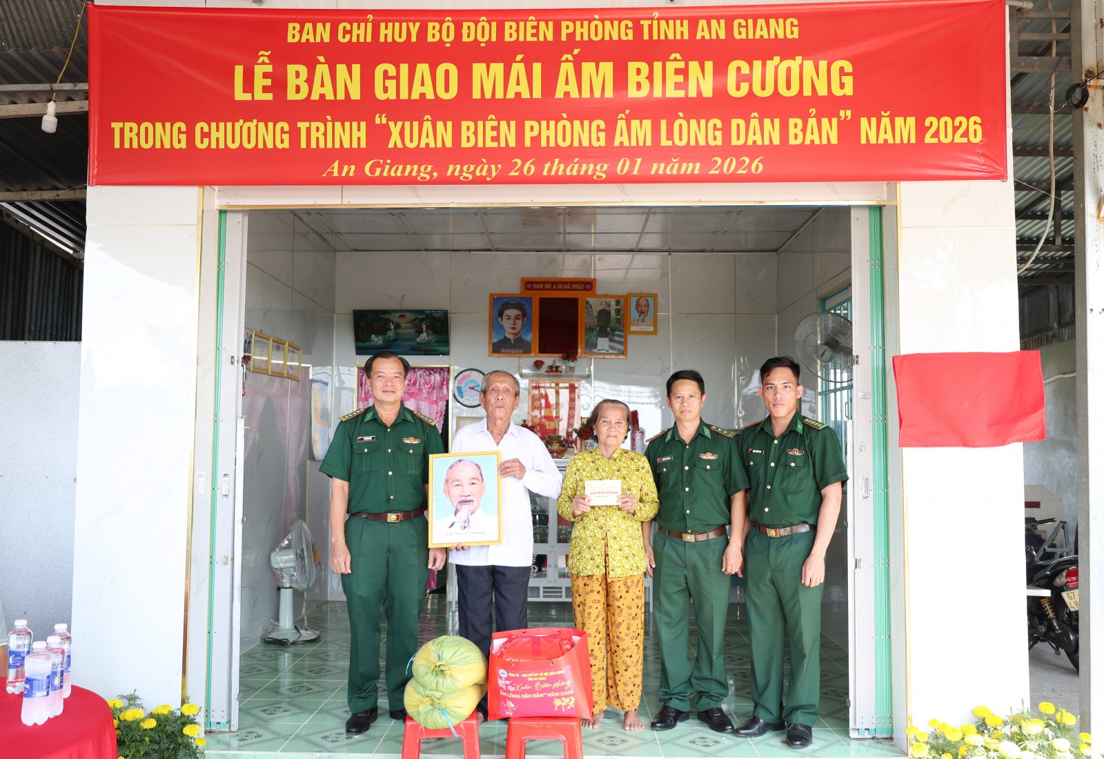 Ban Chỉ huy Bộ đội Biên phòng tỉnh An Giang phối hợp với cấp ủy, chính quyền địa phương xã Vĩnh Xương tiến đến bàn giao Mái ấm biên cương cho ông Trần Văn Nhờ (sinh năm 1946, ngụ ấp Phú Quí), hộ có hoàn cảnh khó khăn về nhà ở trên địa bàn.