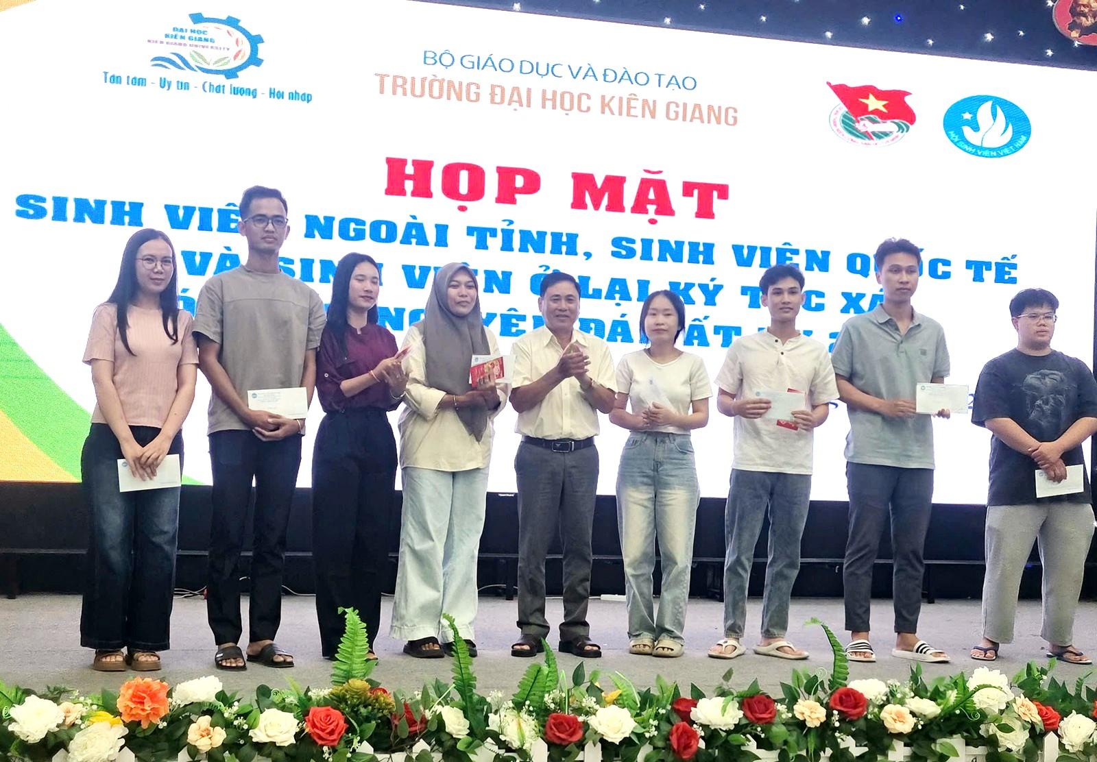 Hội Hữu nghị Việt Nam - Campuchia tỉnh An Giang thăm, tặng quà học sinh, sinh viên Campuchia đang học tập tại các trường trên địa bàn tỉnh nhân dịp tết Nguyên đán và tết Chol Chnam Thmay. Ảnh: THANH THANH
