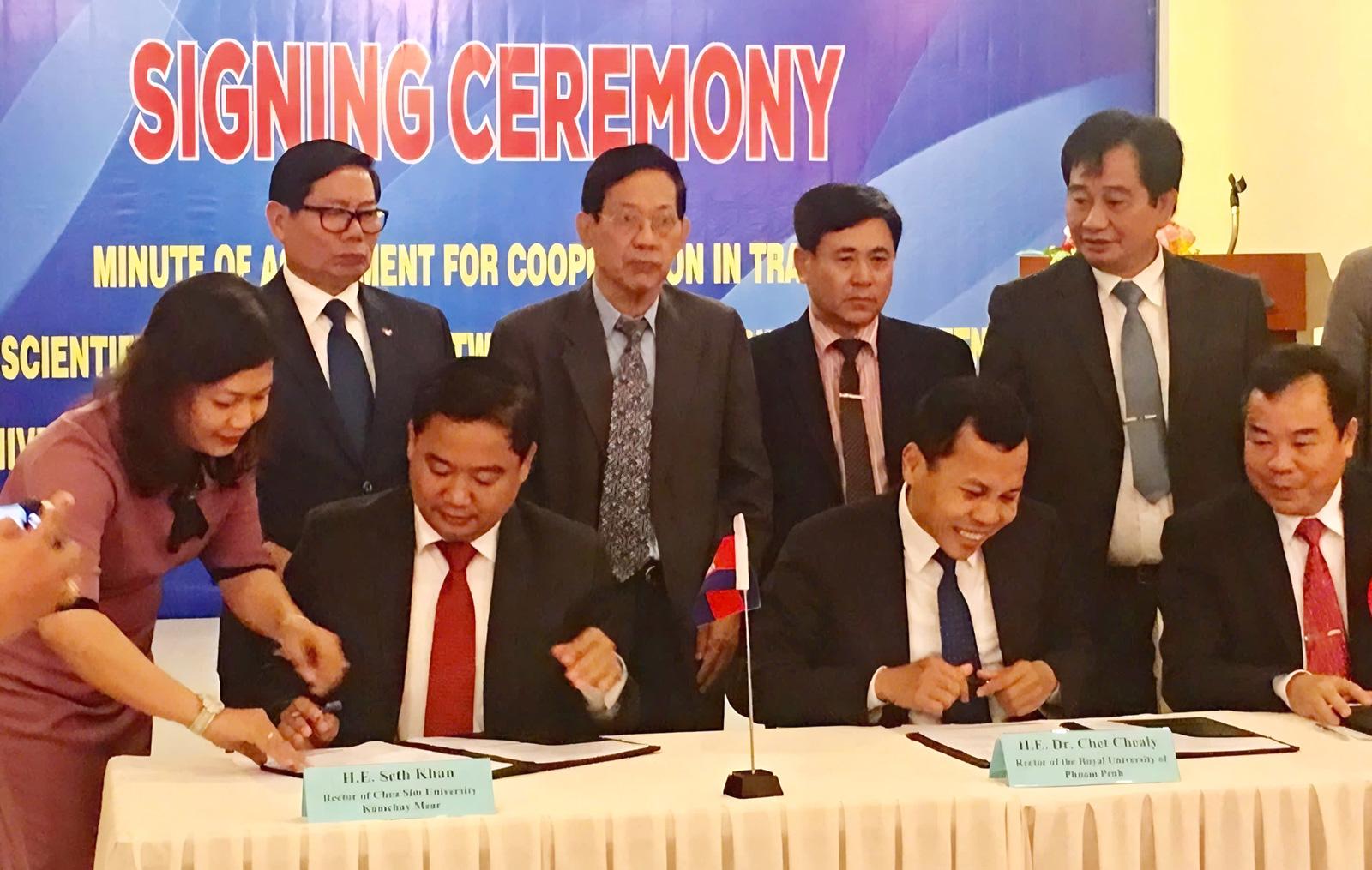 Ký kết hợp tác đào tạo sinh viên Campuchia tại Trường Đại học Kiên Giang. Ảnh: THANH THANH