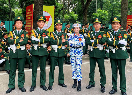 Trung úy Vũ Thị Quế Trâm tham gia sự kiện A80. Ảnh: TIẾN VINH