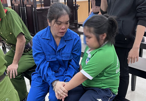Phương nói lời cuối với con tại phiên tòa. Ảnh: NGUYỄN HƯNG