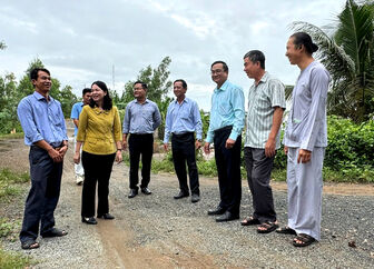 Lãnh đạo xã Ô Lâm và xã Vĩnh Gia khảo sát chuẩn bị xây dựng công trình giao thông nông thôn. Ảnh: ĐỨC TOÀN
