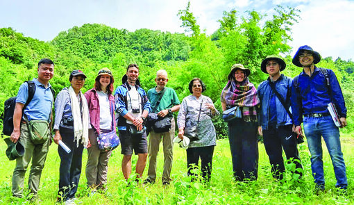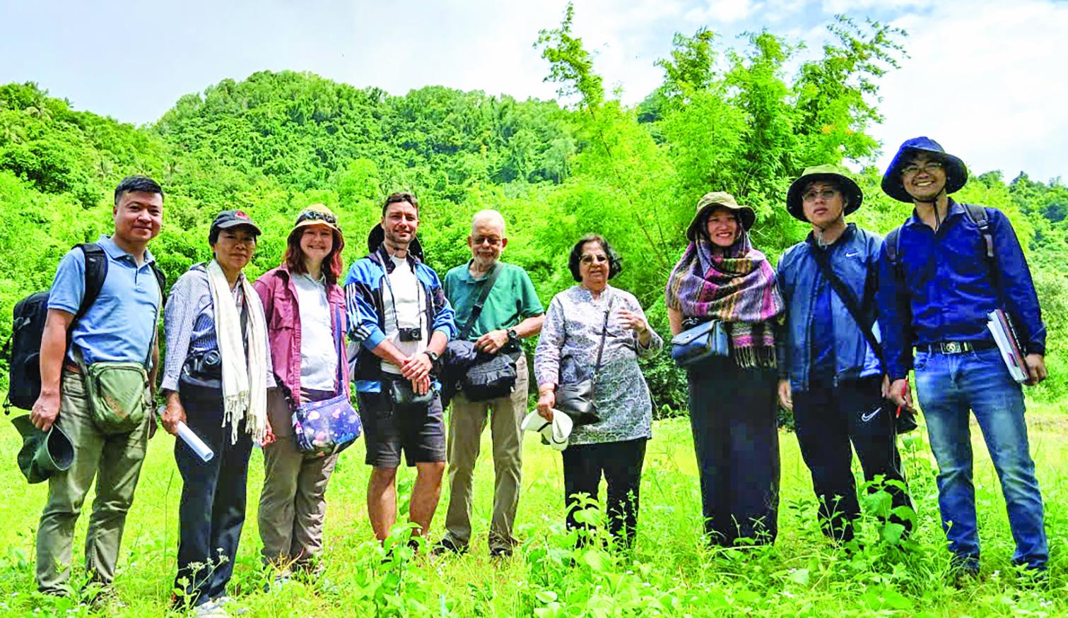 Đoàn chuyên gia khảo sát thực địa tư vấn xây dựng hồ sơ Di sản thế giới cho Khu di tích khảo cổ Óc Eo - Ba Thê. Ảnh do Ban Quản lý Di tích Văn hóa Óc Eo cung cấp.