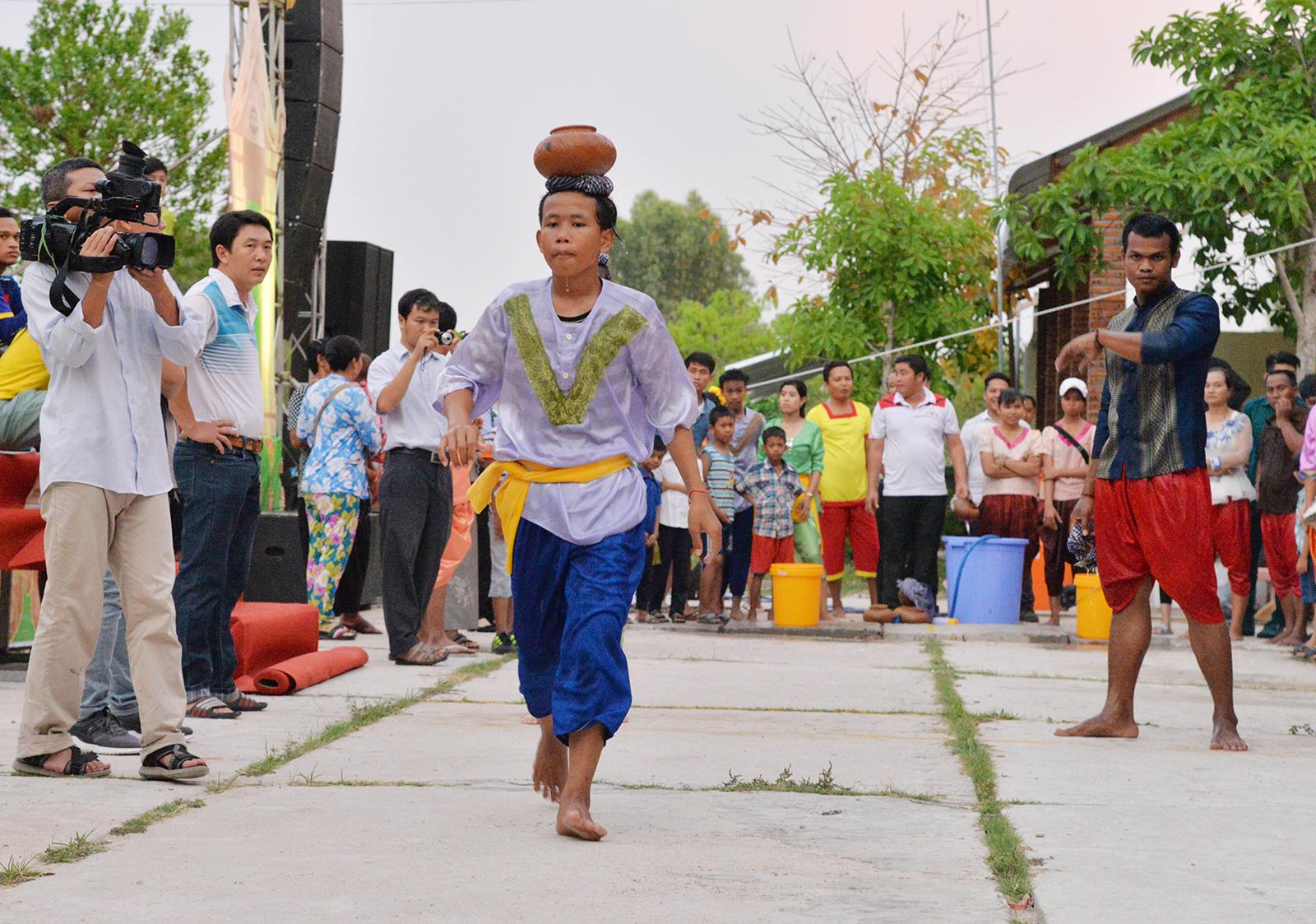 Đồng bào Khmer thi đội cà ôm lấy nước tại xã An Cư. Ảnh: LÊ TRUNG HIẾU