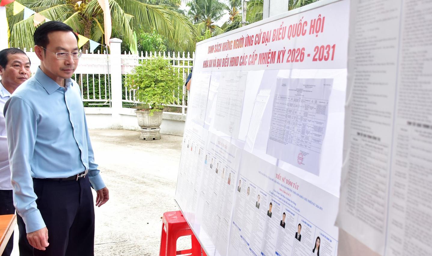 Phó Bí thư Thường trực Tỉnh ủy, Chủ tịch HĐND tỉnh, Phó Chủ tịch Ủy ban Bầu cử tỉnh An Giang Nguyễn Thanh Nhàn kiểm tra công tác chuẩn bị bầu cử tại phường Vĩnh Tế.