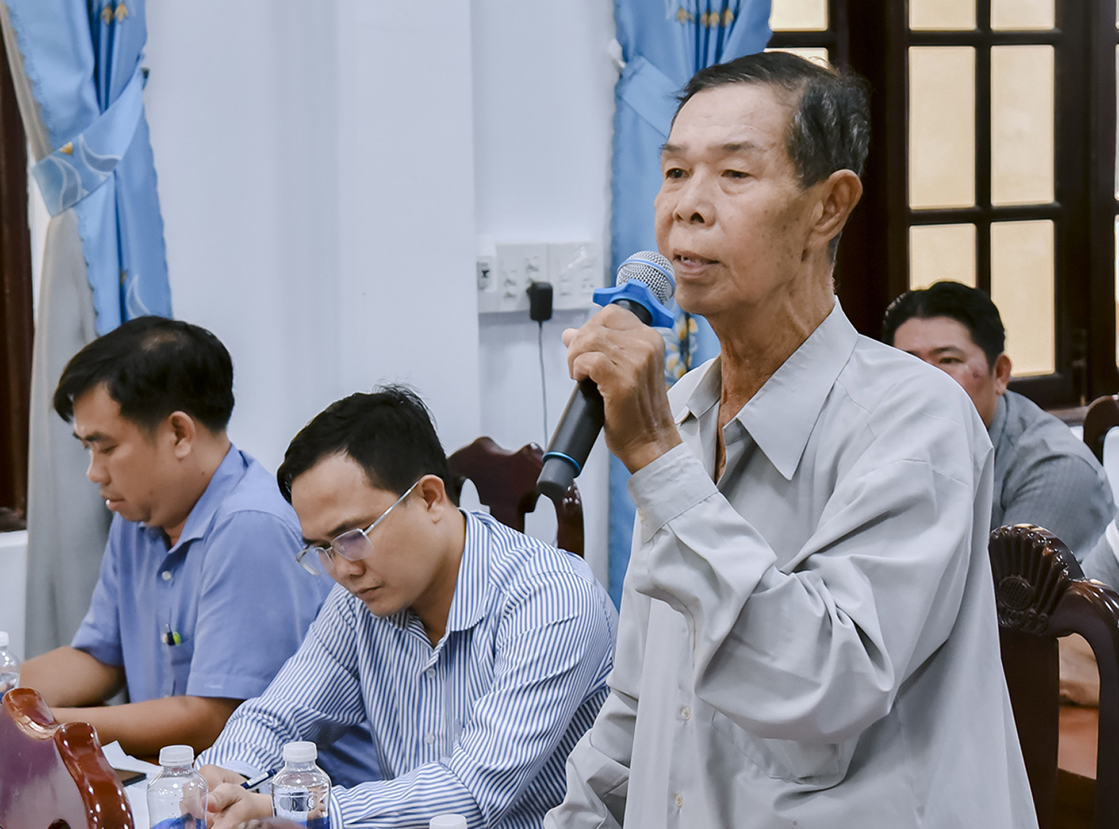 Bí thư Chi bộ khu phố I - Bình San Vương Văn Phận kiến nghị đẩy nhanh thi công dự án đường dẫn ra Cảng tổng hợp Hà Tiên.