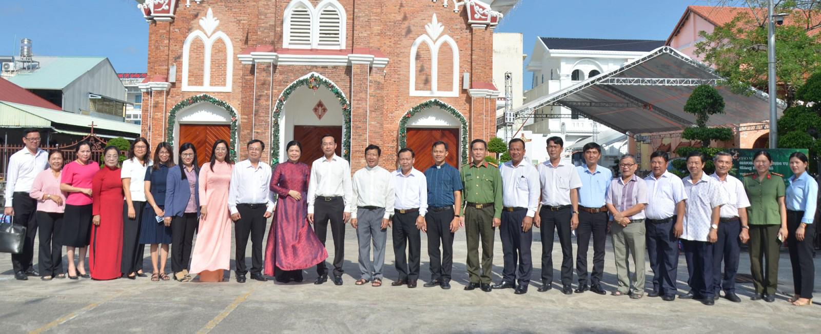 Lãnh đạo tỉnh An Giang và phường Rạch Giá chụp hình lưu niệm với Giáo xứ Rạch Giá.