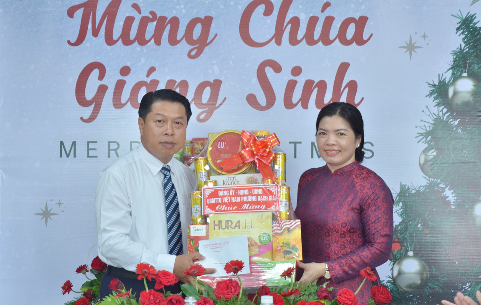 Lãnh đạo phường Rạch Giá tặng quà chúc mừng Chi hội Tin Lành An Hòa.