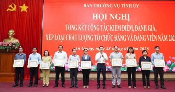 Dịp này, Ban Thường vụ Tỉnh ủy An Giang tặng bằng khen 21 đảng bộ cấp trên trực tiếp của tổ chức cơ sở đảng đạt tiêu chuẩn hoàn thành xuất sắc nhiệm vụ tiêu biểu năm 2025.