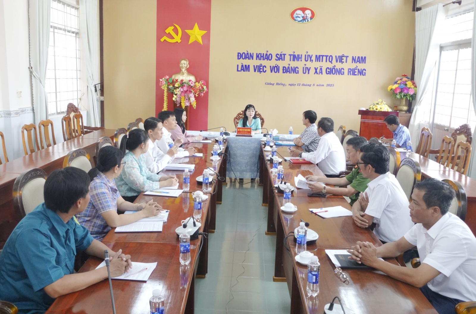 Phó Bí thư Tỉnh ủy An Giang làm việc với Đảng ủy xã Giồng Riềng