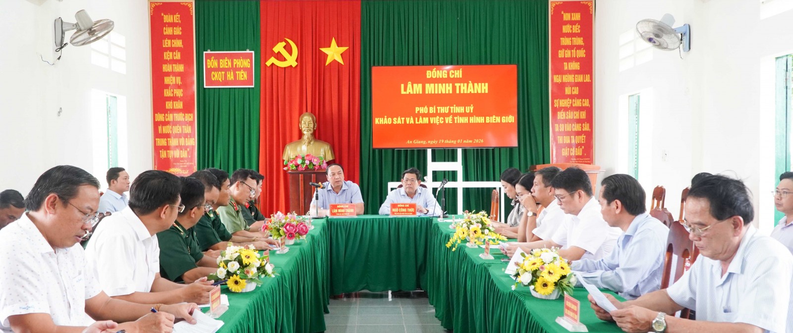 Phó Bí thư Tỉnh ủy An Giang Lâm Minh Thành, cùng đoàn công tác của tỉnh trực tiếp khảo sát tình hình biên giới tại khu vực Cửa khẩu quốc tế Hà Tiên và đến nắm tình hình các công dân Việt Nam xuất, nhập cảnh trái phép tại phường Hà Tiên.