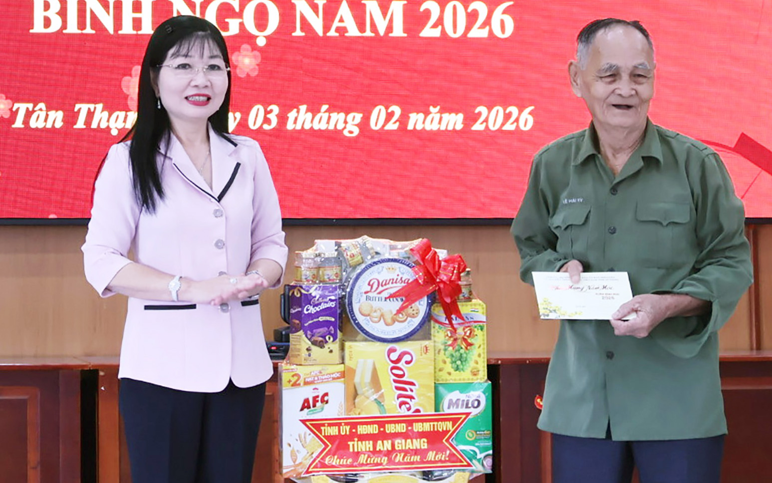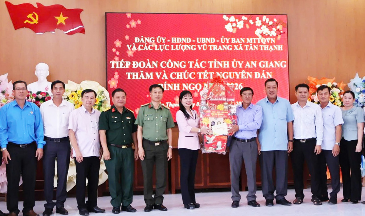 Chiều 3/2, Phó Bí thư Tỉnh ủy, Trưởng đoàn Đại biểu Quốc hội tỉnh, Chủ tịch Ủy ban MTTQ Việt Nam tỉnh An Giang Trần Thị Thanh Hương đến thăm và chúc tết xã Tân Thạnh, Trung đoàn 3 - Sư đoàn 330 và Lữ đoàn 962.
