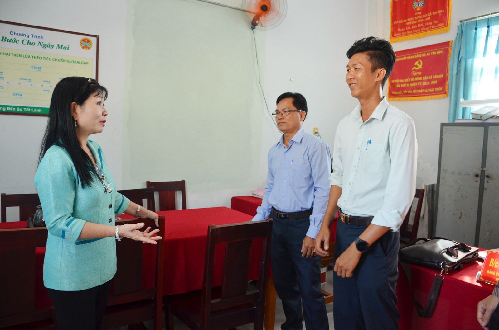 Đồng chí Trần Thị Thanh Hương thăm, động viên cán bộ, công chức làm việc tại Hội Nông dân xã Tân Hội.