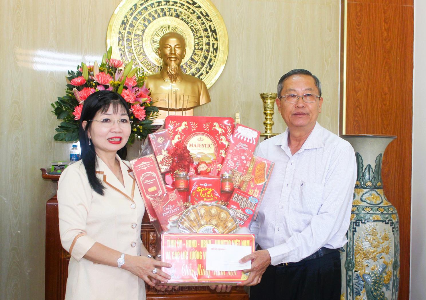 Phó Bí thư Tỉnh ủy, Trưởng đoàn Đại biểu Quốc hội tỉnh, Chủ tịch Ủy ban MTTQ Việt Nam tỉnh An Giang Trần Thị Thanh Hương chúc Tết đồng chí Lê Văn Nưng.