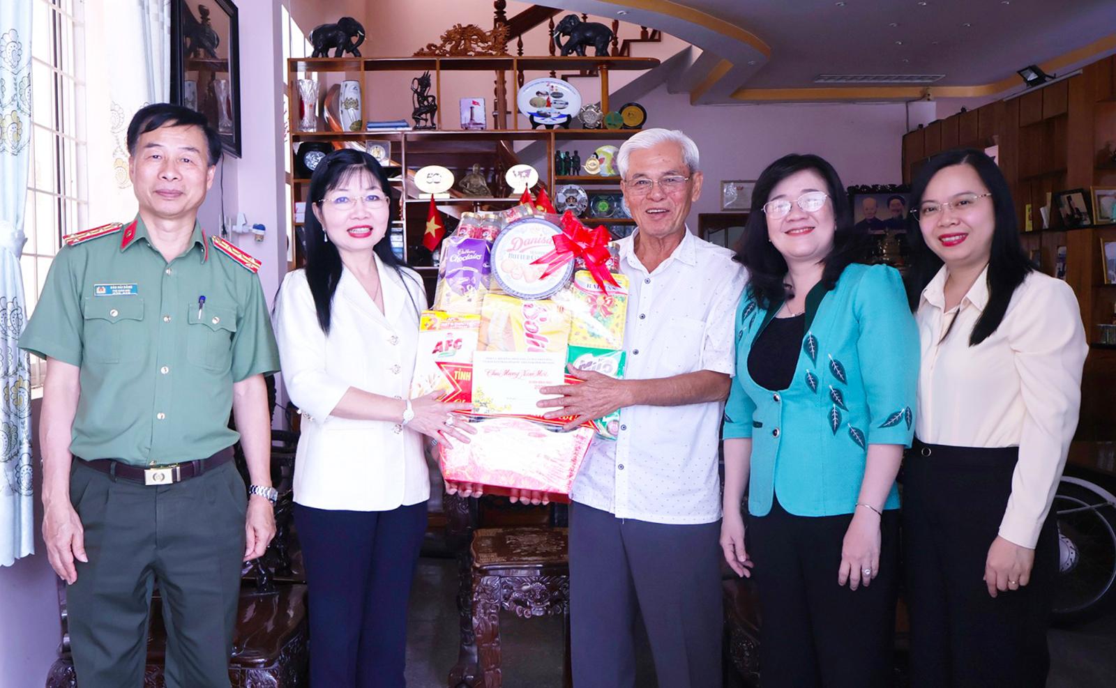 Đồng chí Trần Thị Thanh Hương chúc tết, tặng quà nguyên Bí thư Tỉnh ủy An Giang Nguyễn Hữu Khánh.