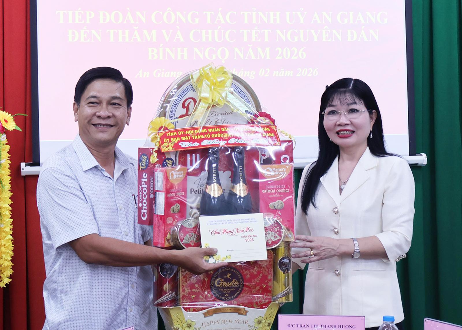 Đồng chí Trần Thị Thanh Hương, Phó Bí thư Tỉnh ủy, Trưởng đoàn đại biểu Quốc hội tỉnh, Chủ tịch Ủy ban MTTQ Việt Nam tỉnh An Giang chúc tết, tặng quà Trung tâm Bảo trợ xã hội An Giang.