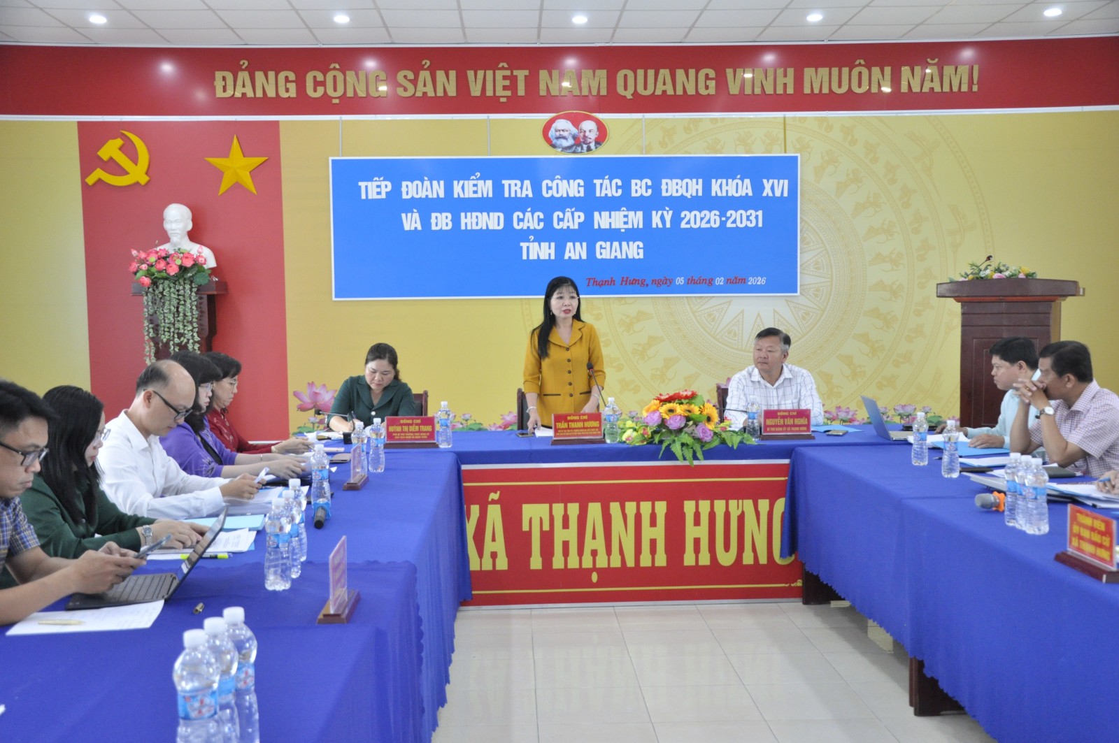 Phát biểu kết luận buổi kiểm tra, Phó Bí thư Tỉnh ủy An Giang Trần Thị Thanh Hương ghi nhận tinh thần chủ động của hai xã trong triển khai các bước chuẩn bị bầu cử.