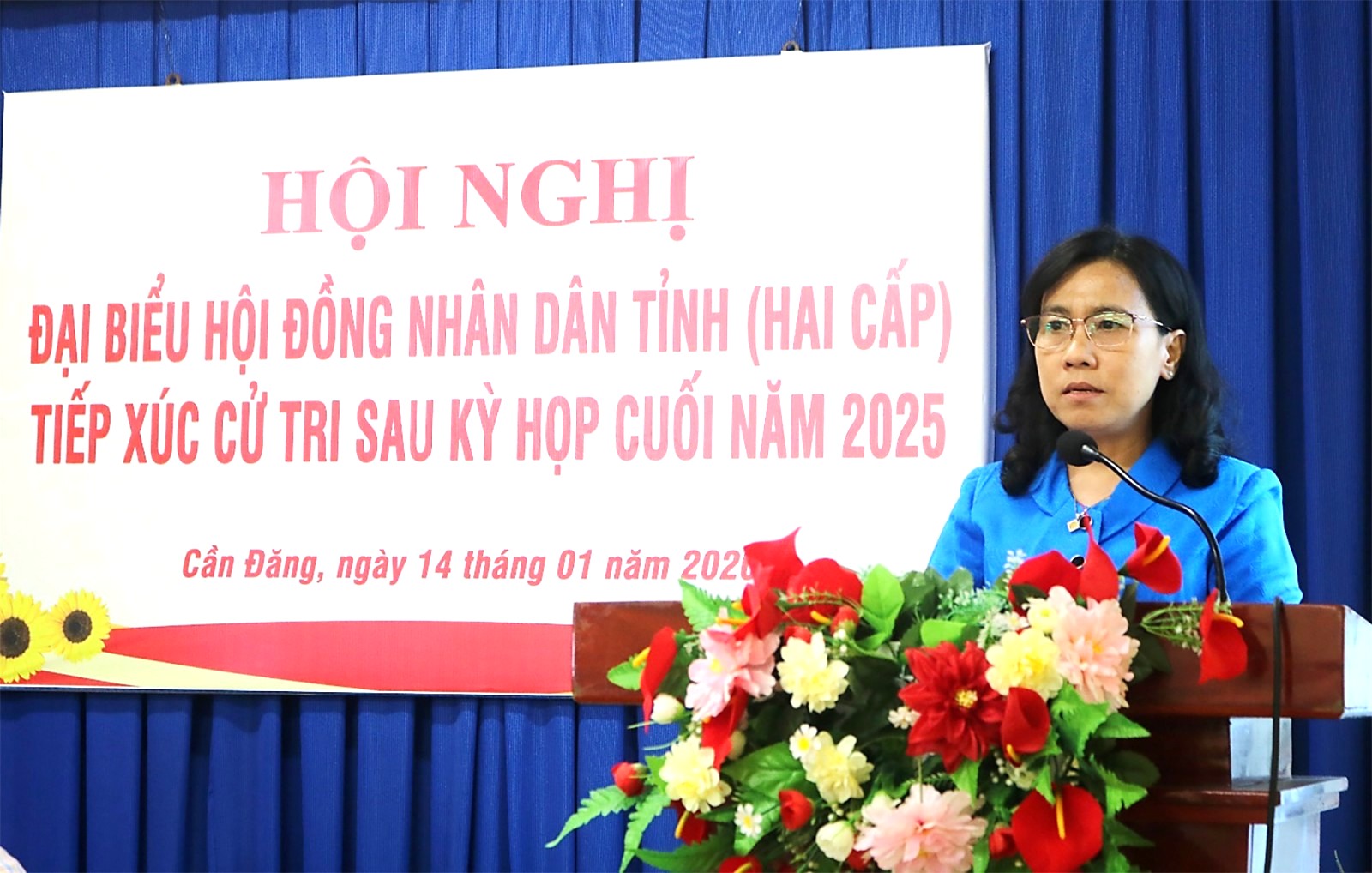 Phó Chủ tịch HĐND tỉnh An Giang Đinh Thị Việt Huỳnh phát biểu tại buổi tiếp xúc cử tri.