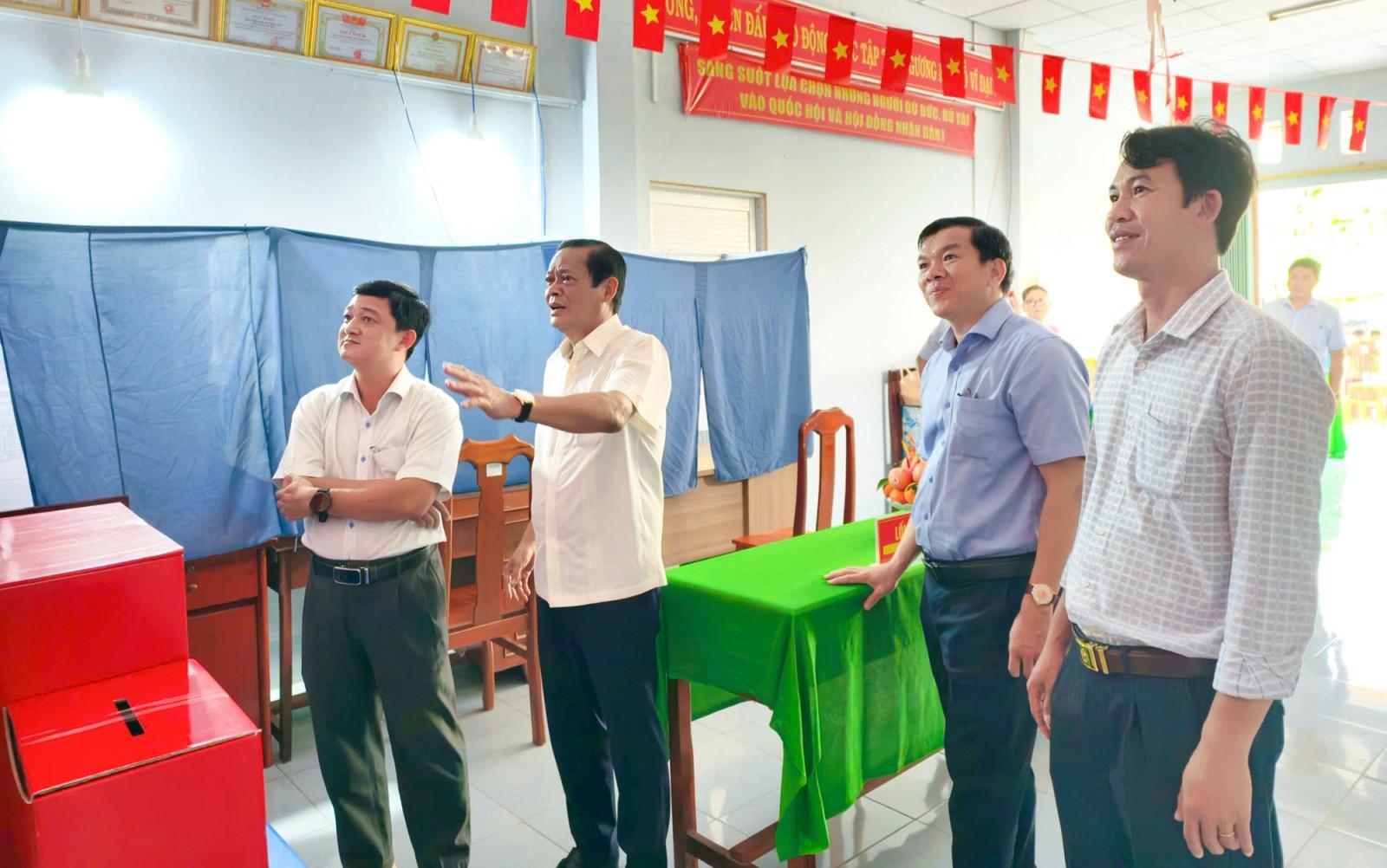 Đoàn công tác kiểm tra điểm bầu cử tại xã Vĩnh Gia.