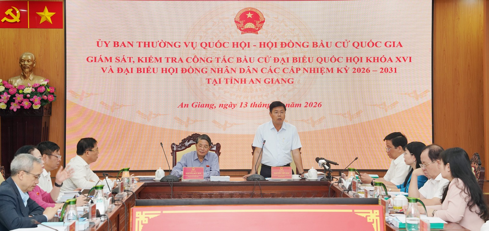 Đồng chí Nguyễn Đức Hải đề nghị tỉnh An Giang xác định rõ đây là nhiệm vụ chính trị đặc biệt quan trọng của cả hệ thống chính trị, sát sao lãnh đạo, chỉ đạo triển khai công tác tổ chức bầu cử đại biểu Quốc hội khóa XVI và đại biểu HĐND các cấp nhiệm kỳ 2026 - 2031 đúng pháp luật, an toàn, tiết kiệm, thực sự là ngày hội non sông, ngày hội của toàn dân.