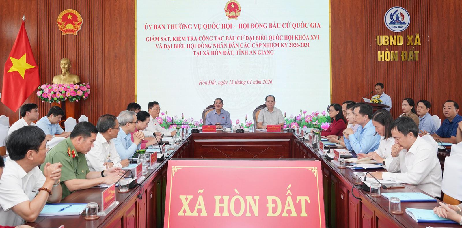 Đoàn giám sát, kiểm tra công tác bầu cử của Ủy ban Thường vụ Quốc hội, Hội đồng Bầu cử quốc gia làm việc tại xã Hòn Đất.